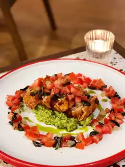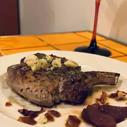 Unexpectedly very surprising, the black hair pork saddle rack thick cut, the outer layer is charred, the meat is very soft and Juicy, and very seasoned, with the top layer of vanilla garlic butter taste great, the sweetness of red wine apple can balance the greasiness of the pork saddle, a good match