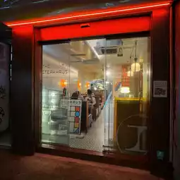 Looking for hidden delicacies "The Steakhaus" is located on Prince Edward Road West, the front and back of the shop is relatively quiet, especially at night when the darkness, you see a red light, looking into the popularity, looking for this stylish steak restaurant, the restaurant with orange design with a retro flavor, the clerk wearing a straight colored shirt is more stylish 👍🏻