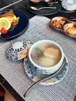 The sweet quarry soup, with chewy fish maw, fresh scallops and cabbage, nourishes the skin ☺️
