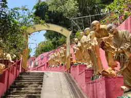 Located in Pai Tau Village behind Man Fat Sze in Sha Tin District, Hong Kong, the Ten Thousand Buddhas Monastery was established in the 1950s. The complex is not just a single temple, but comprises five temples, four pavilions, and one pagoda, including the Ten Thousand Buddhas Hall, Amitabha Hall, Guanyin Hall, Cundi Hall, Jade Emperor Hall, Ten Thousand Buddhas Pagoda, Guanyin Pavilion, Wei Tuo Pavilion, and the Eighteen Arhats Corridor. Be prepared to climb up 430 steps and a steep path up the hill. Along the way, you'll pass dozens of life-sized golden Buddha statues until you reach the Ten Thousand Buddhas Hall. Although named the Ten Thousand Buddhas Monastery, there are actually about 12,800 Buddha statues of various sizes here. Additionally, this site houses the only painted statue of the preserved body of Reverend Yuet Kai in Hong Kong, which is now enshrined in the Ten Thousand Buddhas Hall. 👍👍👍