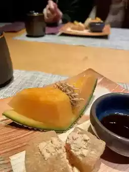 🧡 Steamed food - cold-made corn concentrated soup tea bowl steamed with salmon roe, very exquisite dish, orange, yellow and green. The crispy salmon roe and smooth chawanmushi were a surprise, with a slight addition of herbs a bit too much to cover up the salty freshness of the salmon roe.