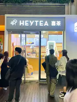 HEYTEA is currently very popular. It is a beverage shop that sells both bubble tea and fruit tea, and there are many toppings to choose from.