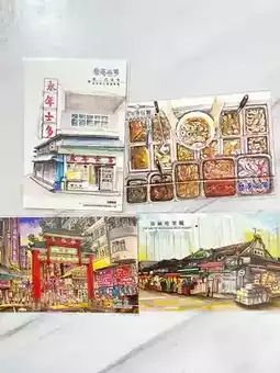 Four postcards with the theme of Wing Nien Store in Yuen Long and old Hong Kong style.