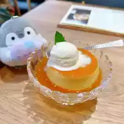 The Japanese egg pudding is homemade 😍 Smooth and tender to taste 😋 Rich egg flavor, sweet and delicious 🤤 Paired with Swiss Movenpick ice cream, it's a delightful treat 🥰