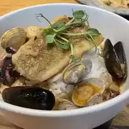 💠Brilled halibut, seafood tea-soaked rice with lobster soup