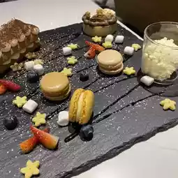 The presentation is exquisite 👍🏻🌸 There are many kinds of desserts, such as Tiramisu with a strong coffee and cheese flavor, Hojicha jelly hazelnut chocolate tart and different flavors of macarons 😊😊 I think Hojicha jelly hazelnut chocolate tart is quite delicious😋