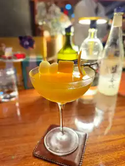 ▫️ Whole Aiwen mango is cut immediately, add Shochu and Vodka and blend well, emit a very sweet mango flavor, drink with a trace of pulp, good to drink!! ️🥹 Served with small balls, it's a bit like drinking alcohol-flavored dessert🤣