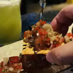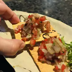 ▪️Peruvian tuna tossed tomato salsa with fragrant grilled squid crisps
