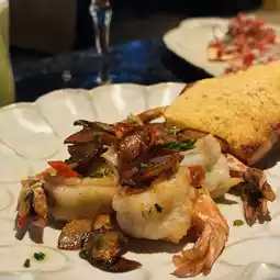 ▪️Garlic sliced olive oil sealed prawns with focaccia toast