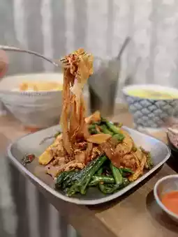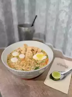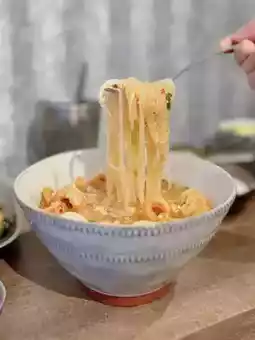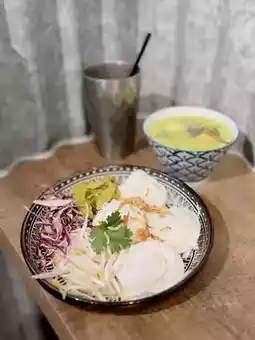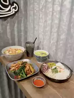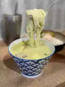 You can choose red curry / green curry We chose the milk flavor is more strong green curry fresh green chili 🫑 plus coconut milk eat extremely fragrant and smooth and a little lemon leaf decoration did not expect the ramen to eat quite addictive