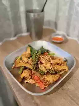 Called drunk but actually no alcohol ingredients 🤣 spicy sauce burst chicken corn rice noodles are not dry model heavy flavor but not too greasy