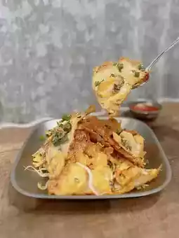 Each piece has a mussel divided very evenly Crispy and crispy pancakes eat like chips with egg flavor in every bite 🥚 Not as greasy as the usual oyster cakes with a little fish sauce is just right