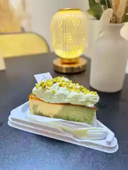 ▫️ Pistachio flavor is very rich, not too sweet or greasy, the cheesecake is very soft and smooth 😋 The cake box also comes with a fork very courteous 🥰