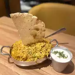 I've always been interested in Indian rice, seeing that it says it's a food that the royal family of North India often eats 👑👑 I have to try it 😚😚😚 Indian rice is particularly long, smoky and tough, and has a very rich spice flavor 🪴🪴 After adding yogurt to mix, the spice flavor will become mild, and the yogurt contains tomatoes, celery, etc., so that the whole rice tastes different! There is also a thin and crispy crisps inserted on top of the rice, which tastes crispy, used to serve rice to make more taste 🤌🏻🤌🏻 great😆😆