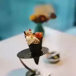 The hand roll contains alfalfa sprouts, avocado, and vegetarian salmon. It has a crispy texture. The salad dressing is added and it is even more delicious with mustard soy sauce👍🏻.