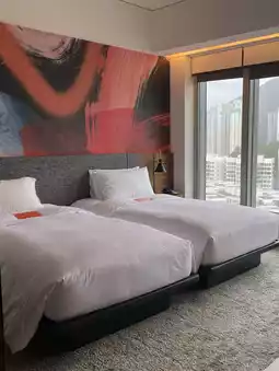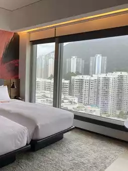 The room has a 270-degree city view. The hotel's guest rooms are stylishly designed and comfortable. The double room chosen this time has a 270-degree city view, from which you can fully enjoy the beautiful city scenery of Hong Kong.