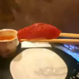 Akashi ~ soy sauce stained, with fresh grapefruit on the face - it tastes very fresh, plus Akashi is the oil-free part of the fish back, low fat content, solid meat, and crunchy