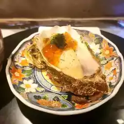 Oysters from Yonezaki, Iwate Prefecture - very large and very plump, heavy seawater flavor, with homemade jelly sour and sweet & seaweed - more prominent to the freshness of the oysters