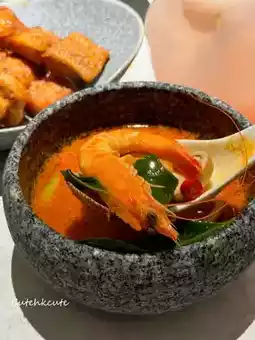 This soup is a must-order every time I go for Thai food. A typical Tom Yum Goong might only have shrimp, but I never imagined it would include whole squid. The broth has a hint of spice, and it's even more appetizing.