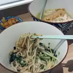 Homemade dumplings are freshly packed daily, there are up to 10 choices, and you can choose soup dumplings or pan-fried dumplings, special mention, their soup is boiled daily with fresh chicken, very sweet and no MSG, and homemade spicy menu free for customers to eat with dumplings, spicy and delicious
