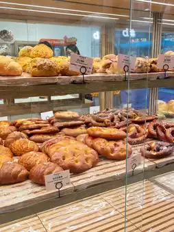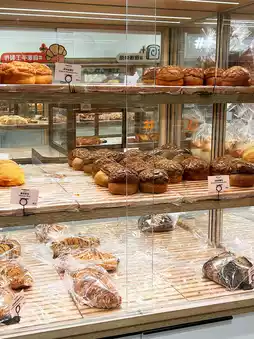 There are fewer people during off-peak hours after work, but some bread varieties might be sold out. The shop's interior is spacious and comfortable, kept clean and hygienic.