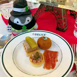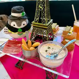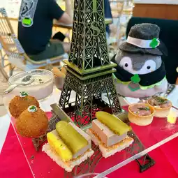 Chose the restaurant's recommended afternoon tea set🌟Picnic in Paris🌟 The afternoon tea set is served with a unique Paris Eiffel Tower ❤️ It feels gorgeous and eye-catching👍 It is divided into two layers, dessert and savory, with beautiful presentation and pleasing to the eye😍