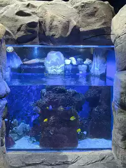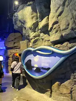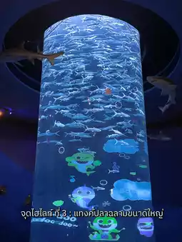 The special thing about this place is that the interior is like a cave with a large aquarium that is 5.5 meters high and 13 meters wide, protected by clear acrylic glass, allowing you to see many small and big fish. Enjoy watching more than 400 species of fish and also see coral up close. It's so exciting, it's like being a child again.