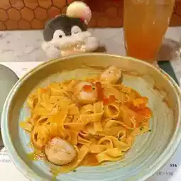 First I chose a pan-fried Hokkaido scallop salmon roe lobster sauce flat pasta. The pasta is bouncy and textured, chewy and chewy, each strip is hung with fragrant lobster juice, it tastes good👍 Random noodles are attached with three large strips, full and delicious🥴❤️