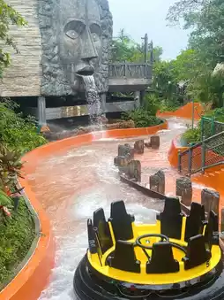 In terms of fun, 10/10. This ride guarantees that if you play, you'll definitely get wet. For those who don't want to get wet, you can also go see the decorations of this rafting forest. There's also a corner where you can spray water to join the activity. The thrill is 3/10. Children can play.
