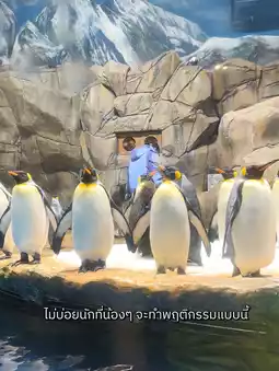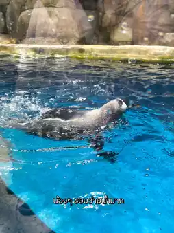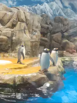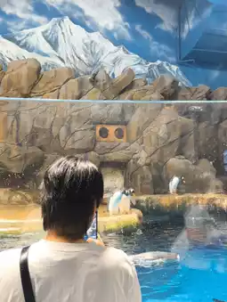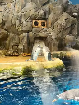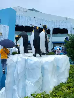 The penguins are from the South Pole. There are 3 species: Gentoo Penguin, King Penguin, and Southern Rockhopper Penguin. There are 90 of them. There is a lecturer explaining their behavior (who can speak English). When we went, the lecturer explained that the penguins did something that is not often seen, which is standing still in a group. They are very cute. They are all chubby and cuddly. But surprisingly, the group is still babies and they are very good at swimming.