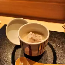 Sit down and have an appetizer first, #日本喷油 #金丝瓜, which is cold and refreshing, and very comfortable to eat in the hot summer. Then have another dish of #tea-bowl-mushi. The most special one is the tea-bowl-mushi cooked with soy milk. The sweet bean fragrance and the golden bream on top make the combination of sweet and fresh taste very delicious.