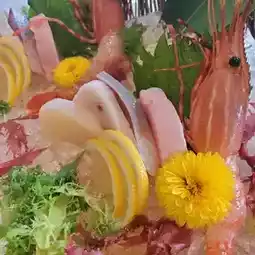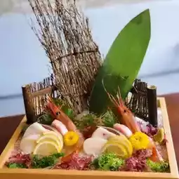 Toro, sashimi, scallion, peony shrimp, swordfish fillet
