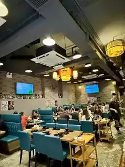 The restaurant is very large, the ceiling is high enough, the location is right across from the New City.