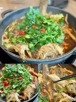 Then eat barbecued fish, selected the spicy soup of small spicy, barbecue fish large, roll up to eat the same portion as outside to eat barbecued fish, very full!