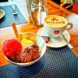 Mirage Bar & Restaurant is the perfect spot for daytime meetings, dining, and drinking. Featuring an iconic 25-foot-high island bar and modern decor, it offers a variety of delicious dining options with local flair.