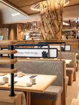 Que has opened its seventh branch, located in Metroplaza, Kwai Fong. With its signature warm wooden decor and cat-themed setup, the new store has been packed since its opening. Que's two-person set menu ($498) is known for its great value, including salad, snacks, sushi tacos, main course, dessert, and drinks.