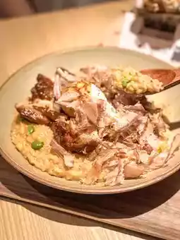 The risotto is very creamy and moist, paired with chicken thigh and a low-temperature poached egg, it's full of energy!