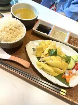 The portion of Hainanese chicken is quite large, and it tastes very tender.