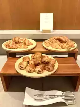Freshly baked croissants, quiche, sweets, macarons, etc.