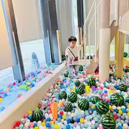 There are colorful ball pools paired with watermelon balls 🍉