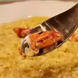 The rice grains soak up the lobster soup