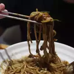 Korean fried noodles with lots of ingredients and enough sauce to wrap around the noodles, every bite is full of sauce.