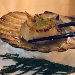 The master grilled the scallops on a flame for another 20 seconds or so to make the giant sashimi more charred. The sashimi were large and cooked just right, soft and Juicy, with fresh and rich salmon broth and salmon roe to double the freshness