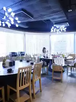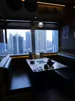 The decoration is mainly wood, with floor-to-ceiling glass windows for lighting, simple and bright,