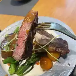 Served with stir-fried wild vegetables, then served with wasabi young lake mashed potatoes, can be made at 30%, 50%, 80% raw ripeness, mine has 50%, done just right, the meat 🥩 quality is also played just right, not too tough.