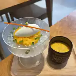 One cup is mango🥭passion fruit sago frozen soup, the other is fresh mango🥭, lemon🍋 yogurt, coconut🥥Bavarian, before eating to pour the frozen soup, mix together to eat sour and sweet, feel very fresh! If you don't want to eat cake🍰 but want dessert, I recommend having this one to relieve your hunger.
