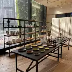 There are cutlery and utensils for sale at the entrance of the restaurant. Walking into the restaurant, it turns out that the dining table furniture is for sale. The design concept is very good.