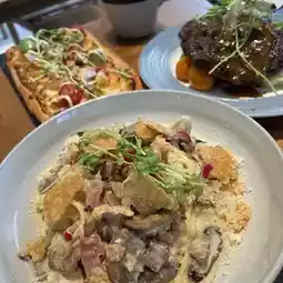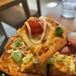 The first bite of small tomatoes burst with juice 😂, really fresh, pizza 🍕 skin is very crispy, mint + avocado 🥑 + shrimp this combination is surprisingly really delicious!