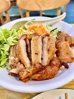 The fragrant pork chop is crispy on the outside and tender on the inside, with a delicious and soft texture. The vermicelli is cooked just right, neither too soft nor too hard, and when paired with fish sauce, it's sweet and sour, making it more appetizing with each bite.
