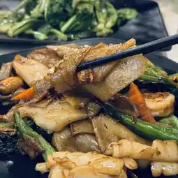 I didn't expect the best thing of the night was this fried rice noodles, rice noodles like sand rice noodles super coarse, but smooth taste, with seafood ingredients shrimp, squid, mussels, fried eggs, carrots, fried cabbage, the point is very pan and sauce super tasty, thought I could not eat, but it was eaten extremely quickly 🤣